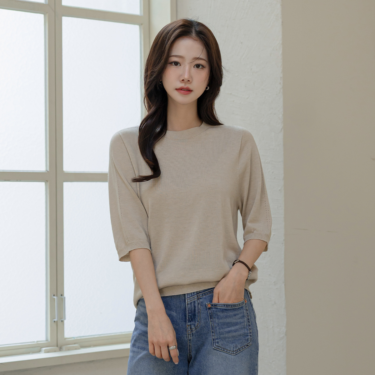 [모노앳디] 리너프 홀가먼트 울 7부 니트