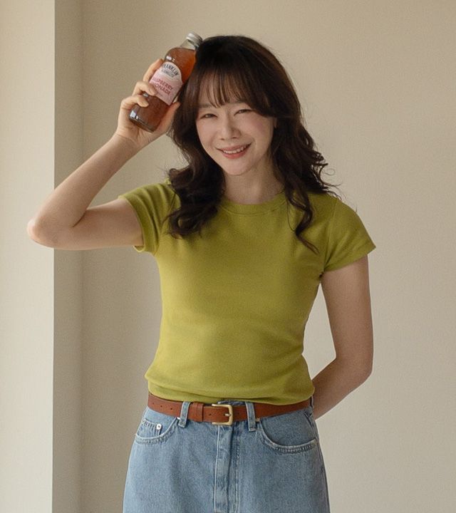 닌나난나[스판6%][5color] 아로브 쫀쫀 스판 라운드 반팔티