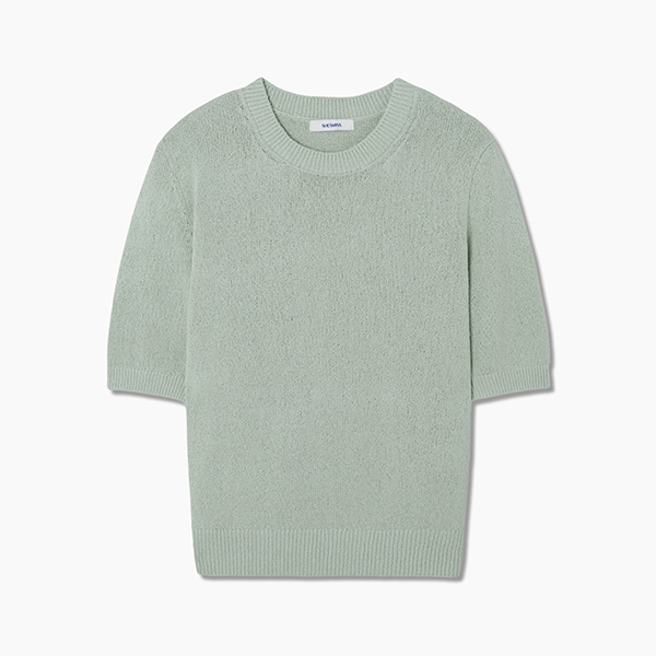 부클 라운드넥 하프 슬리브 니트_SSKPOQ22230_PN