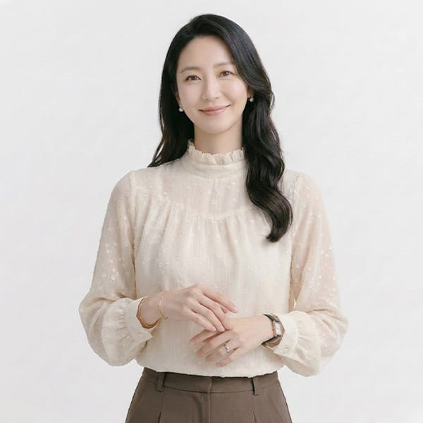 NB3078 여성 로맨틱 반폴라 프릴 퍼프 긴팔 블라우스
