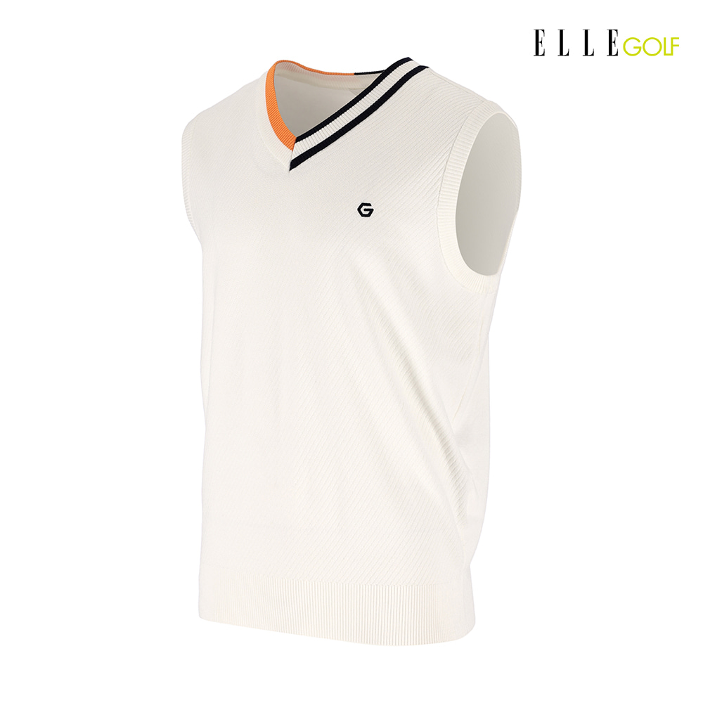 [엘르골프] 남성 V넥 사선조직 조끼 스웨터_6J33101