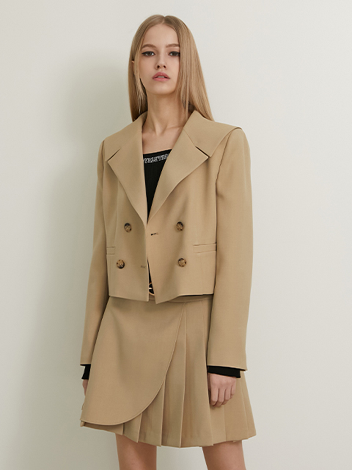 [에고이스트] 세일러 카라 크롭 페미닌 자켓 베이지 EP2OJK02