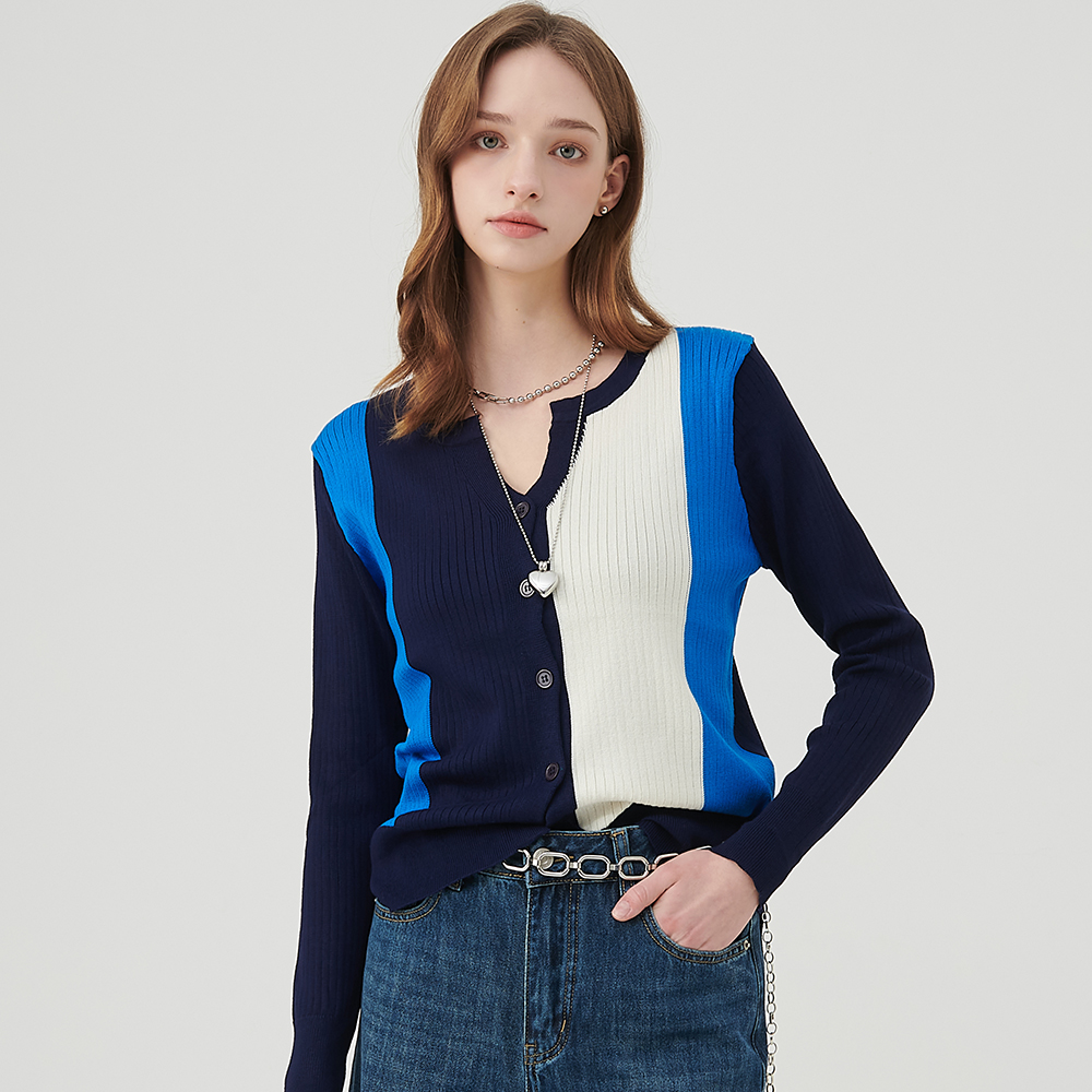 [마이르핀] 유니크 컬러블록 라운드넥 가디건