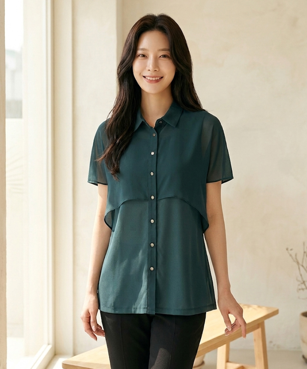 [PAT 여성] 쉬폰배색 전타 티셔츠_9H45502