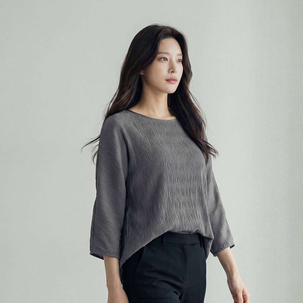 [PAT 여성] 메탈 배색 플리츠 티블라우스_1I42904