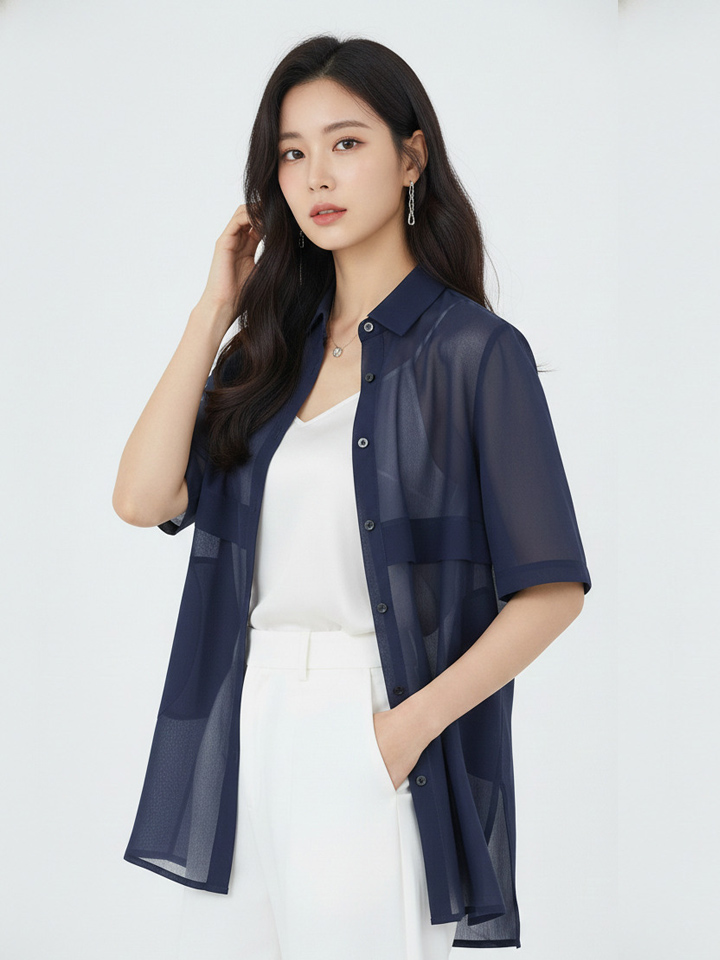 [크로커다일레이디] 네이비 쉬폰 롱가디건 티셔츠 CLCMTS107