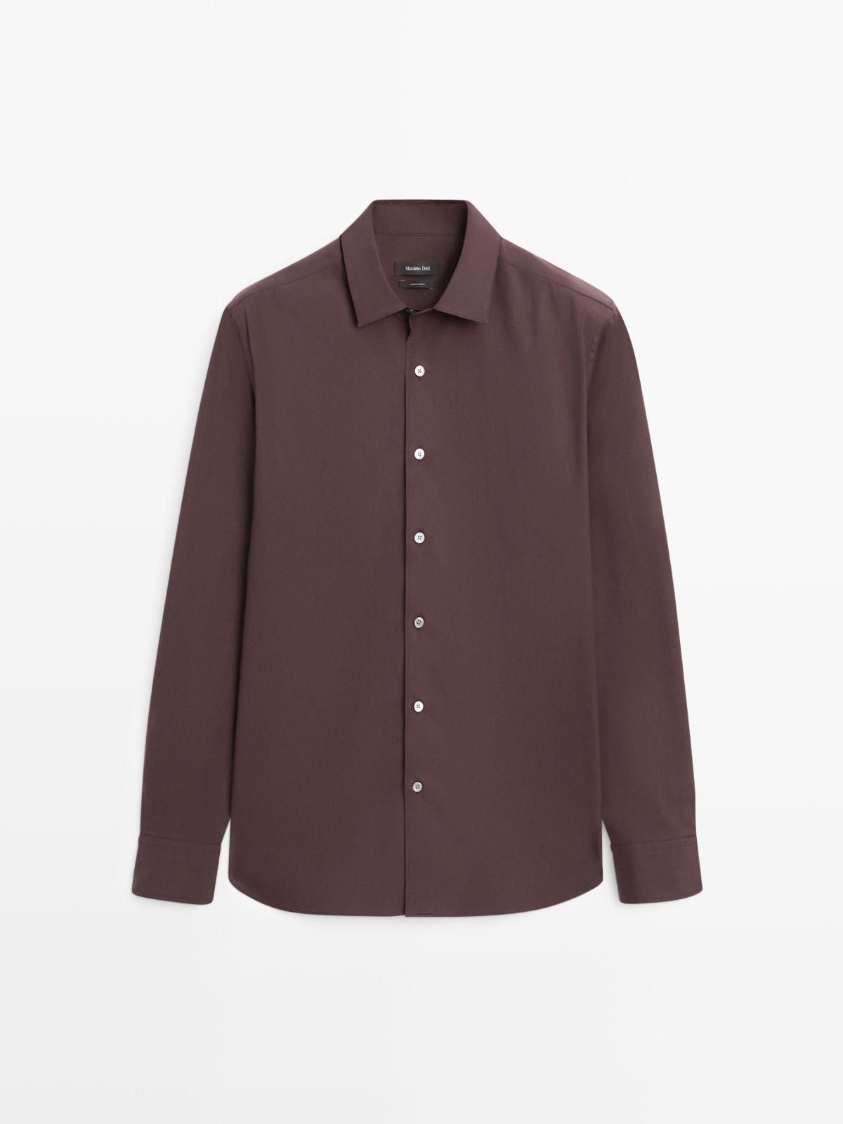 마시모두띠 슬림핏 스트레치 테크니컬 긴팔 셔츠 2026/400 BURGUNDY