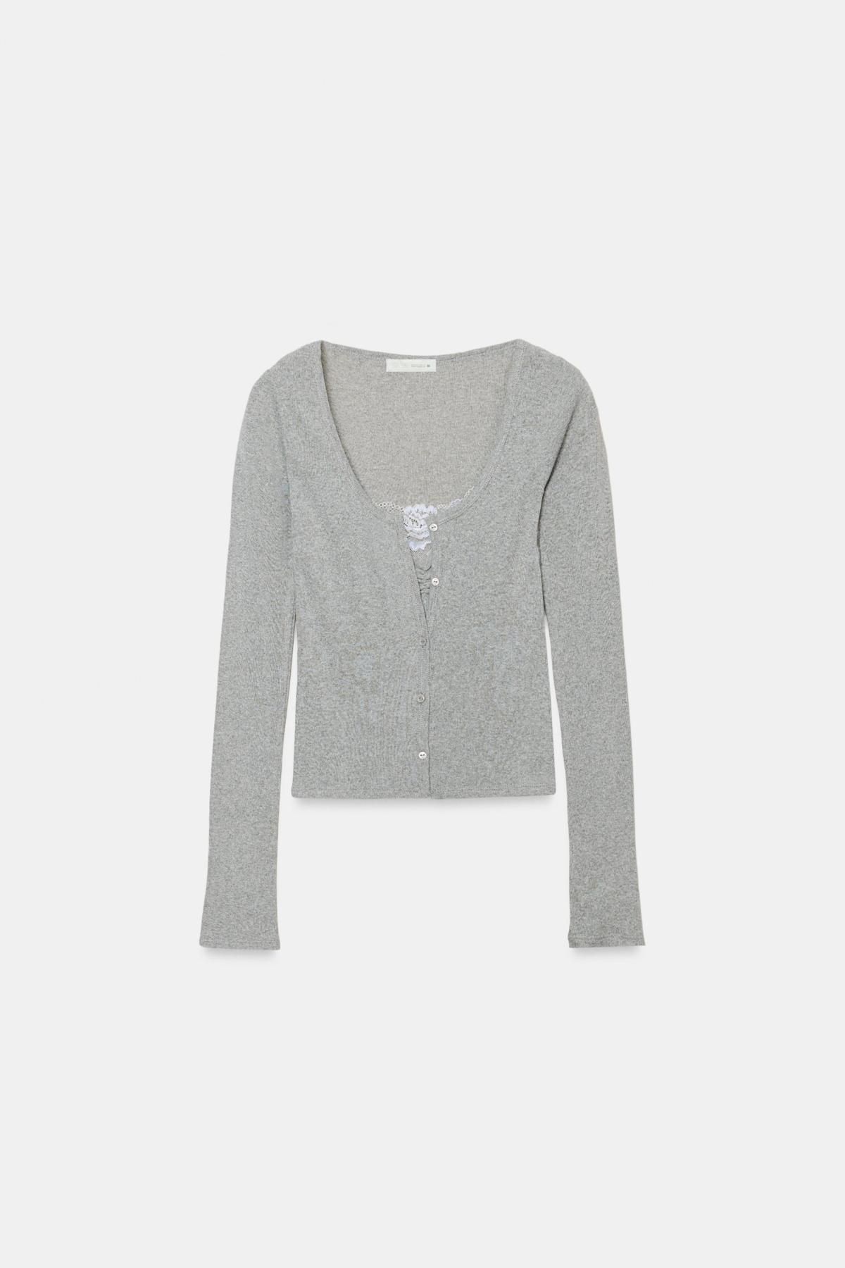 자라 그레이 레이스 브이넥 크롭 니트 재킷 5644/315/803 GREY MARL