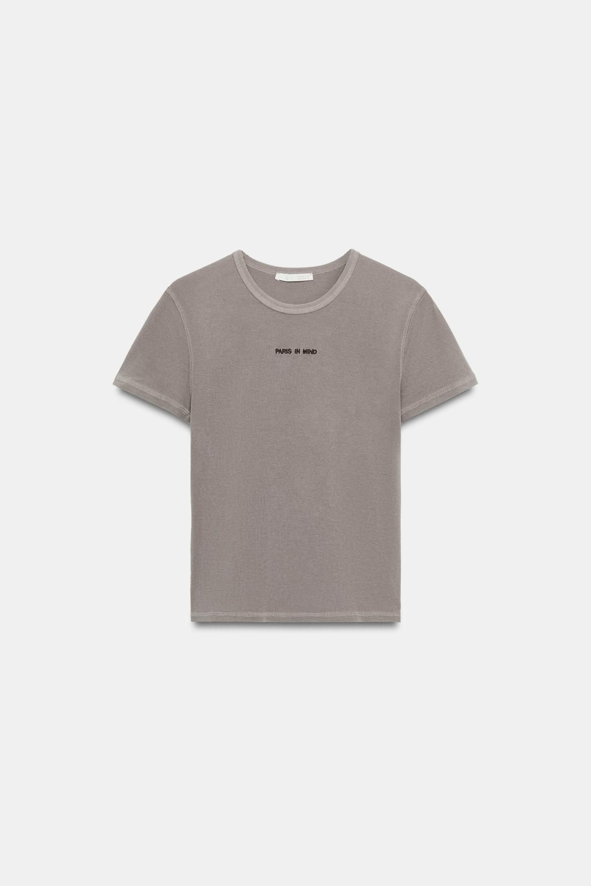 자라 슬림핏 라운드넥 레터링 반팔 티셔츠 5644/040/802 GREY