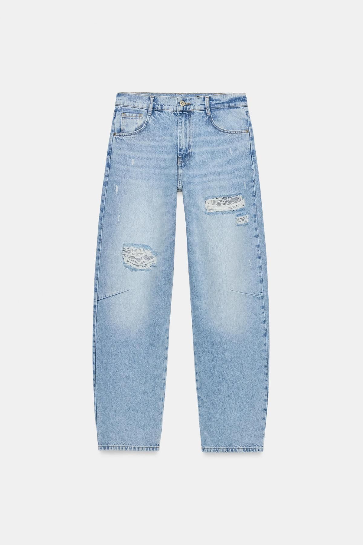 자라 레이스 디테일 배기핏 데님 청바지 6147/095/427 MID-BLUE