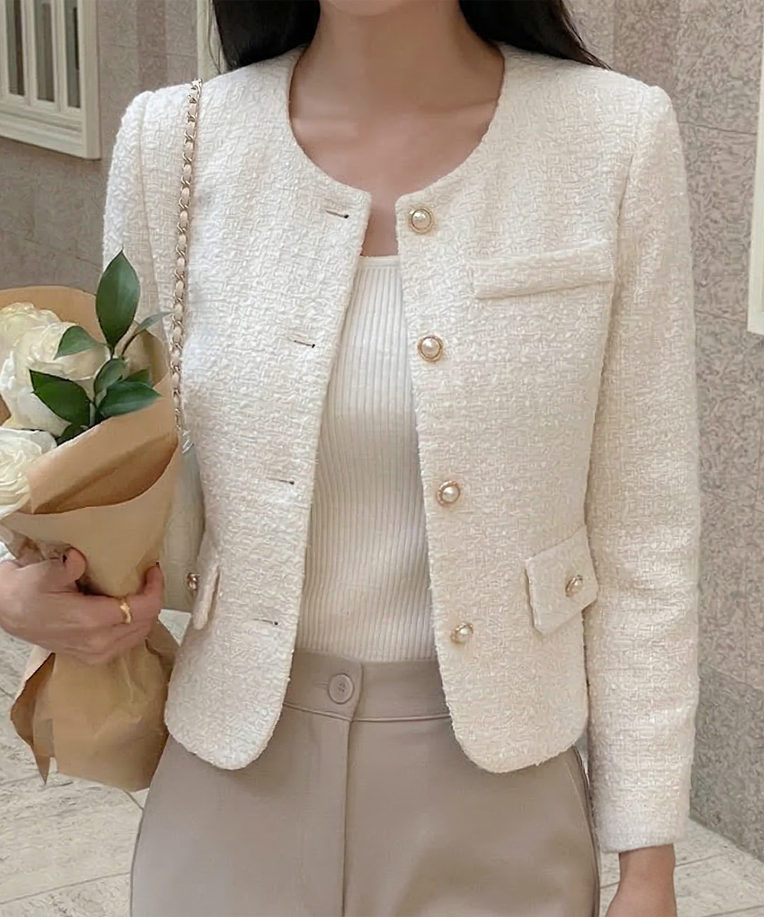 금장 버튼 베이직 트위드 자켓 (WIDAJK007)