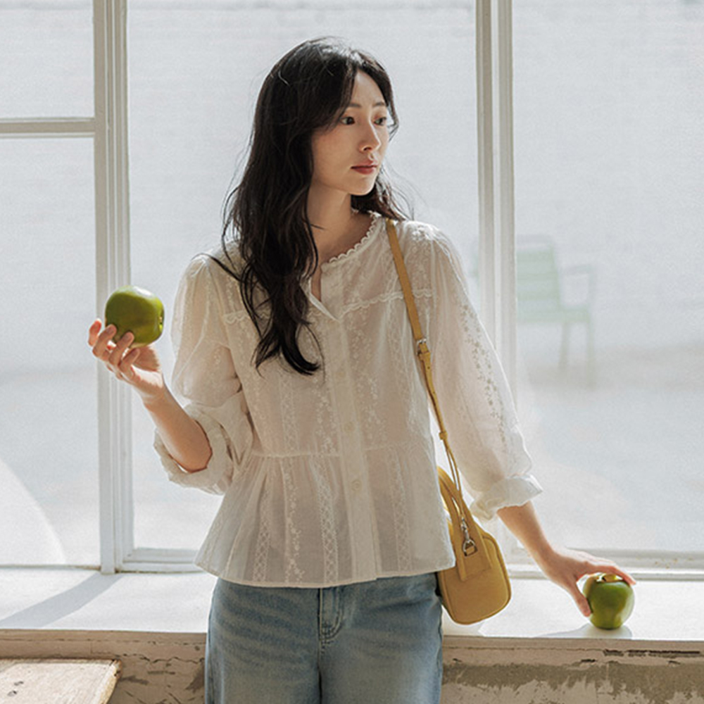 [2컬러/벚꽃룩] 플로럴 자수 페플럼 블라우스