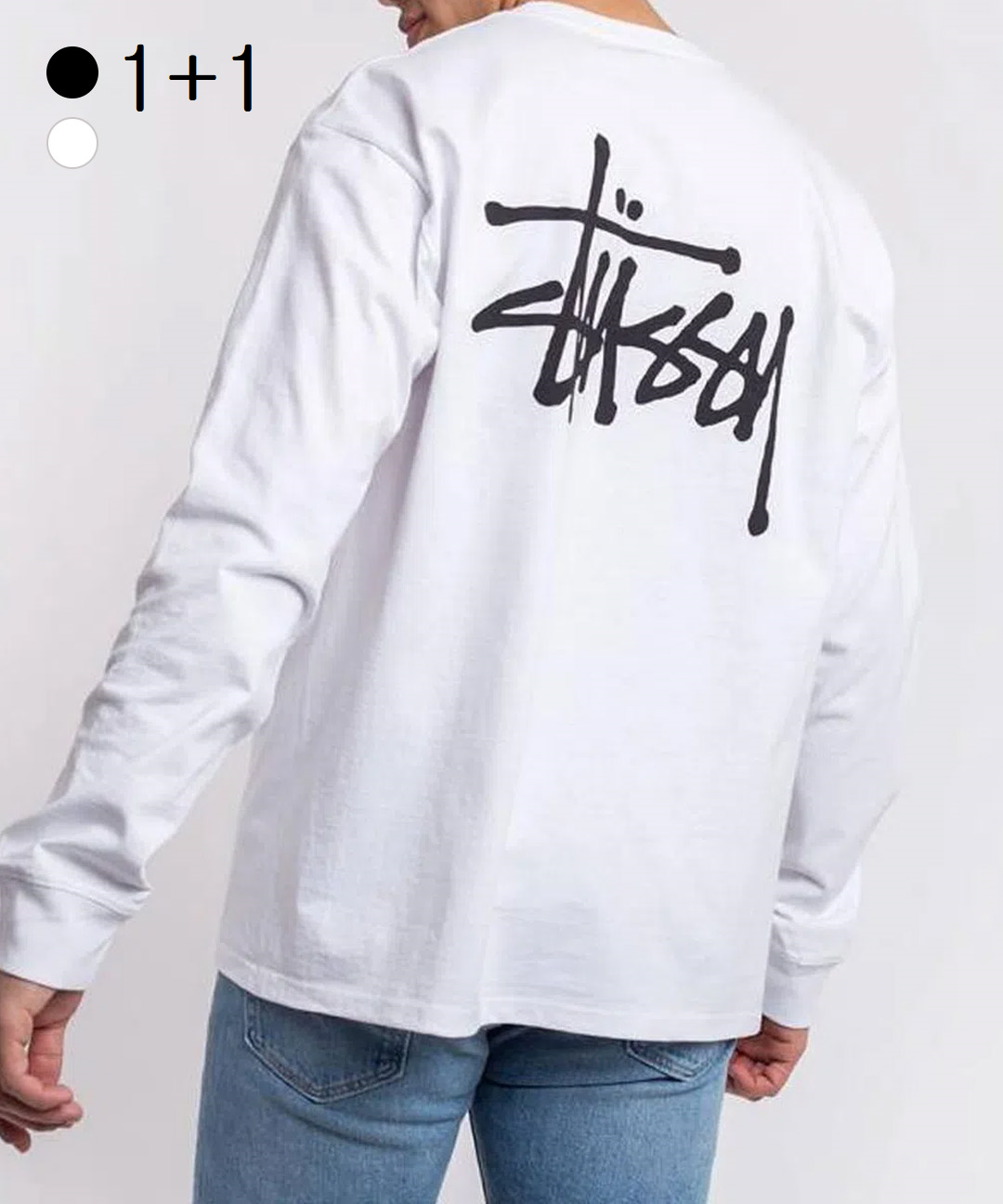 1+1 베이직 로고 스투시 긴팔 티셔츠 (2컬러)