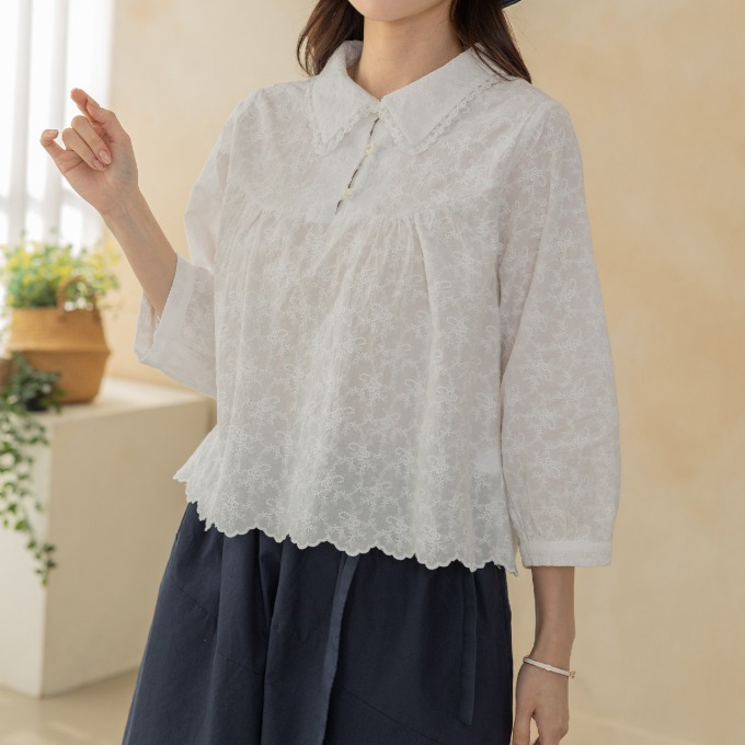 [디얼마미] 블리 펀칭 블라우스 /마담 미시 중년 여성 빅사이즈 40대 50대