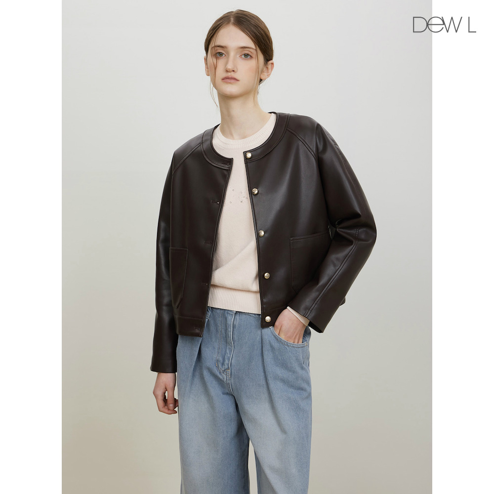 [듀엘][Exclusive] 라운드넥 페이크 레더 자켓 BR_D261PSG702