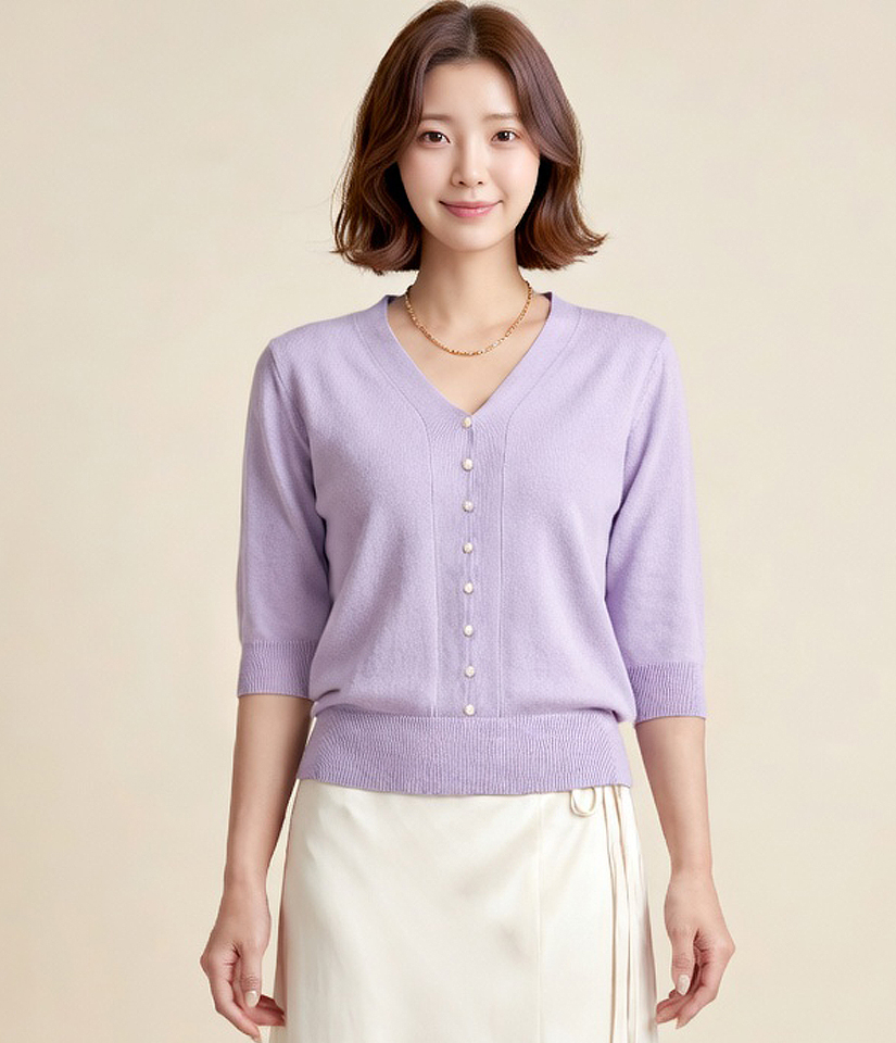 [예쎄] 펄 장식 브이넥 5부소매 니트(S6SKN039A)
