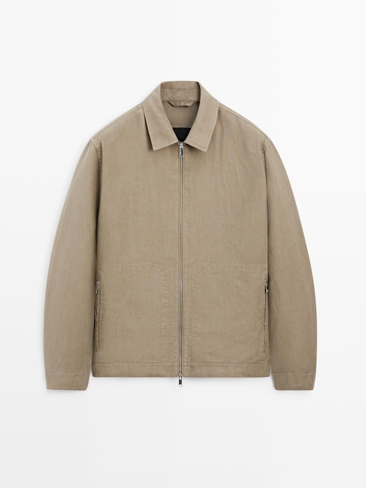 마시모두띠 프리미엄 리넨 칼라 집업 재킷 3134/426 OCHRE