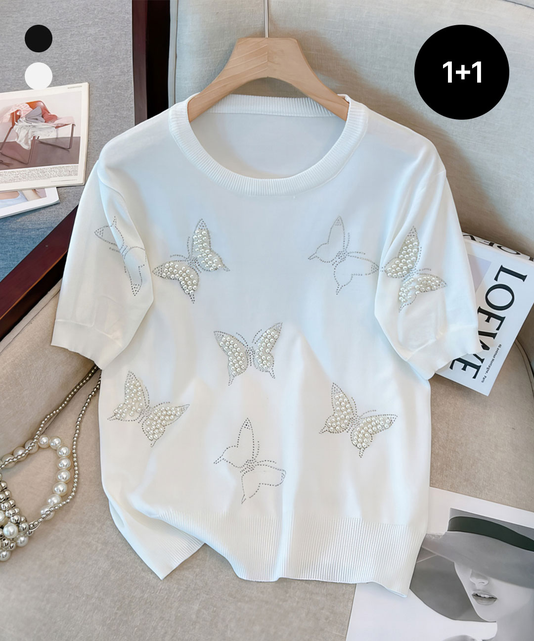 [1+1]KARRA 진주나비반팔니트_A5S0679_SET