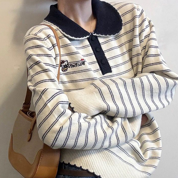 세일러 패치 카라 스트라이프 캣 니트 2color
