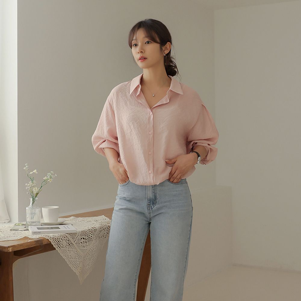 [66-120] 절리 내추럴 핀턱 카라 남방
