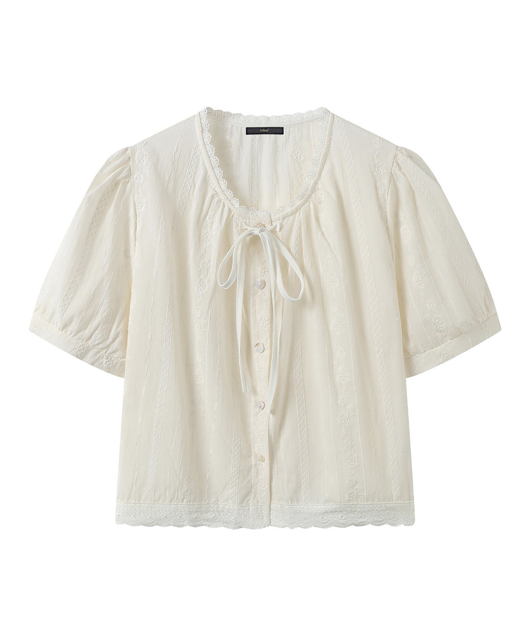 플로럴 자수 레이스 리본 블라우스 (DQ2BA004A)