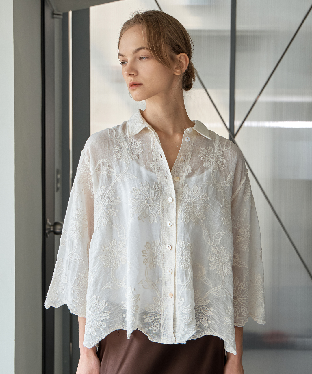 플라워 패턴 레이스 긴팔 셔츠 (XQ1BA008L0)