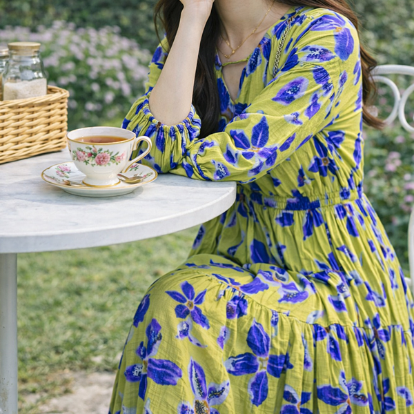 비비드 라임 퍼플 블라썸 롱 원피스