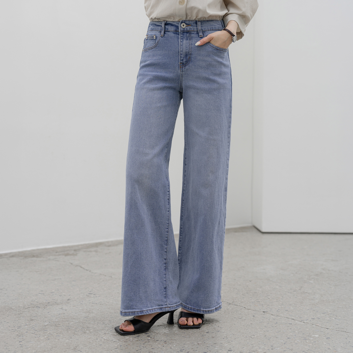 [모노앳디] 라스카 뒤밴딩 와이드 데님 팬츠