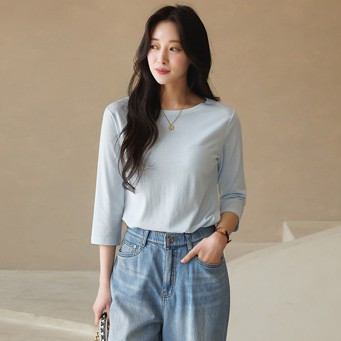 에인지 부드러운 모달 블렌딩 7부 소매 라운드 티셔츠(4컬러)