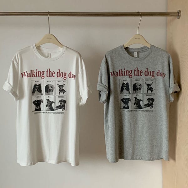 [슈팅스타] 데일리 캐주얼 루즈핏 베이직 강아지 패턴 반팔