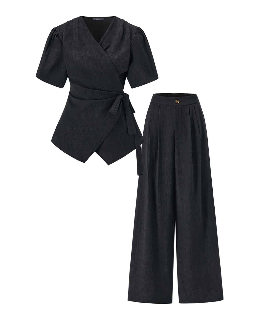 랩스타일 V넥 블라우스 롱 팬츠 셋업 (GQBOW003D)