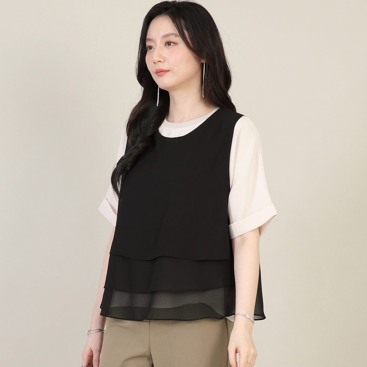 캉캉 쉬폰 시스루 여성 봄 여름 라운드 숏 크랍 조끼 V04636