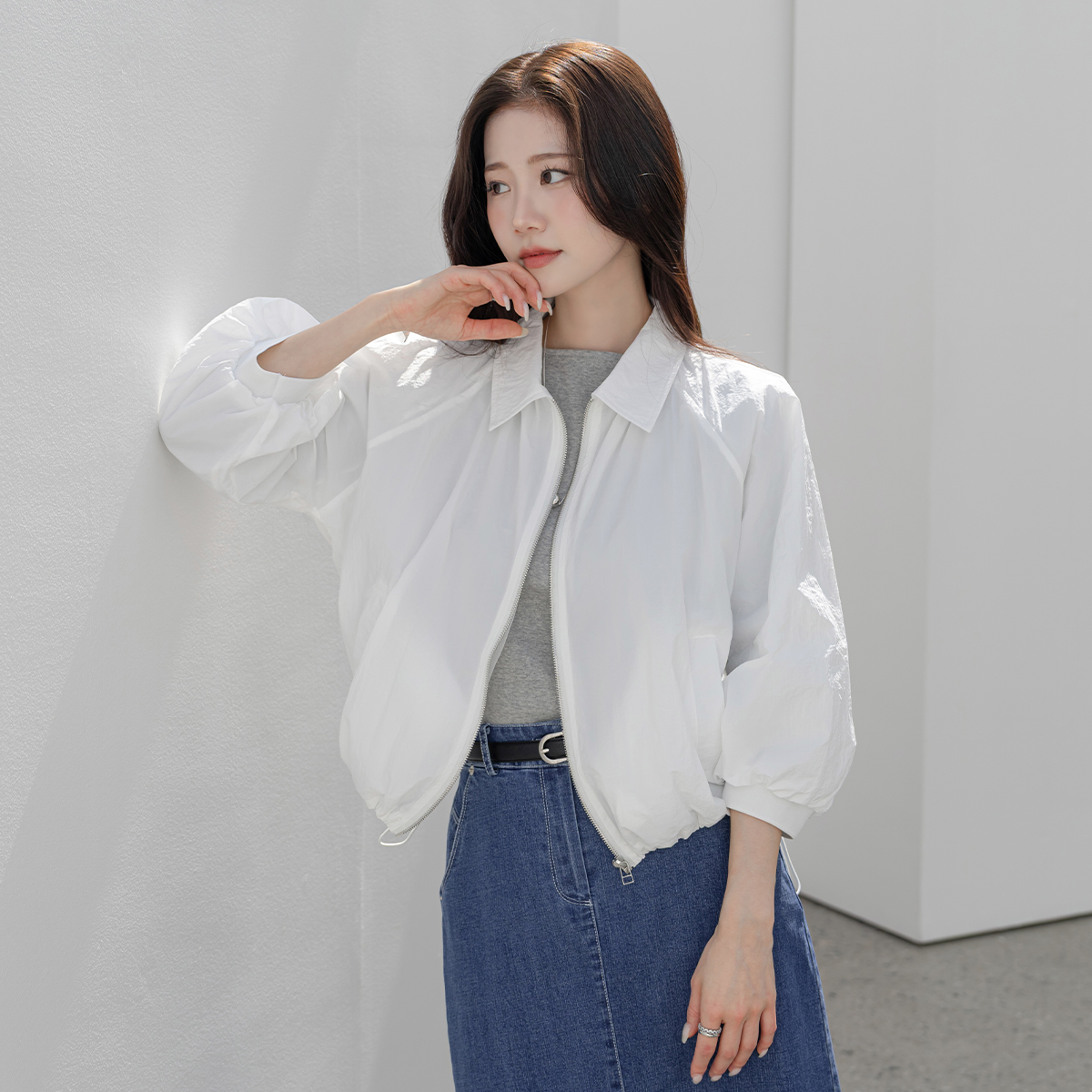 [모노앳디] 센틀리 스트링 카라 바람막이 집업 점퍼