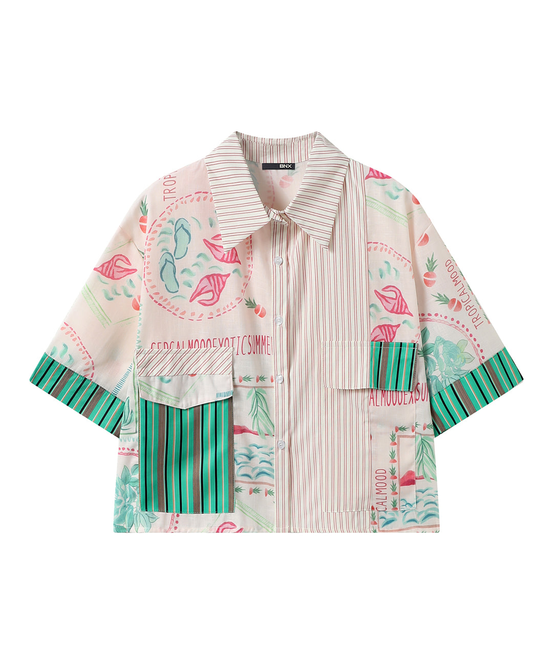 컬러풀 믹스 패턴 크롭 빈티지 반팔 셔츠 (BY2BL001L0)