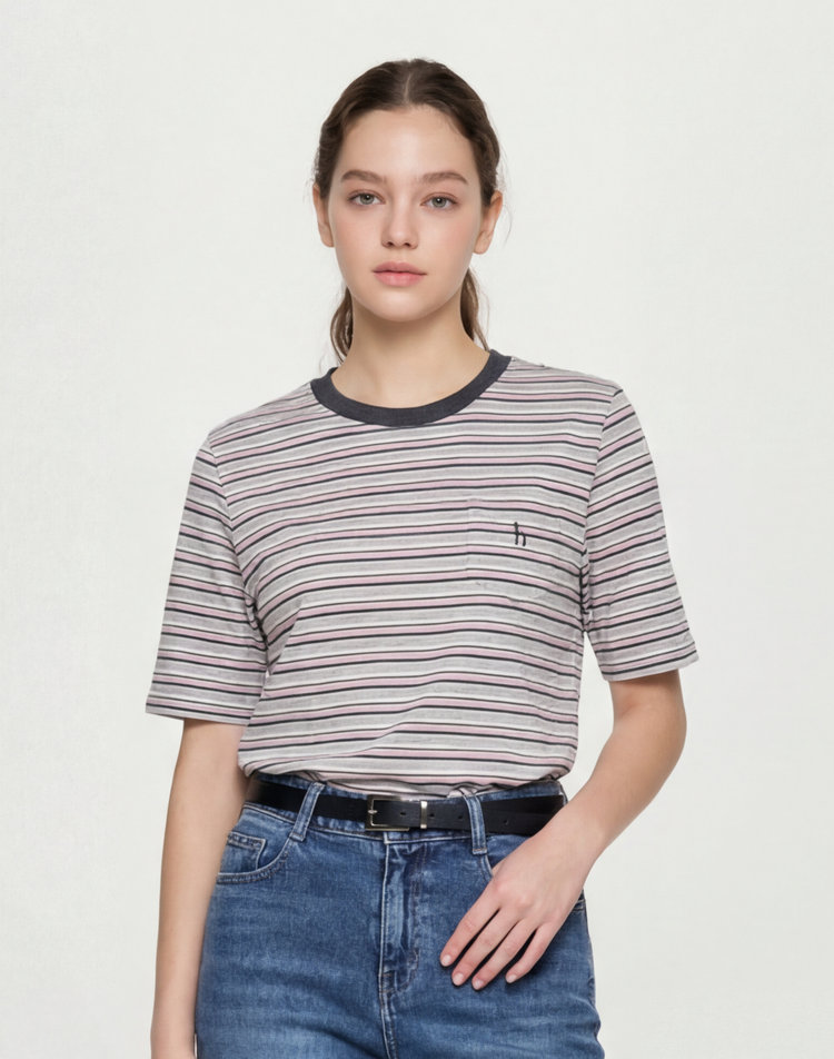 멀티스트라이프 반팔 티셔츠 그레이 HSTS6BP01G1