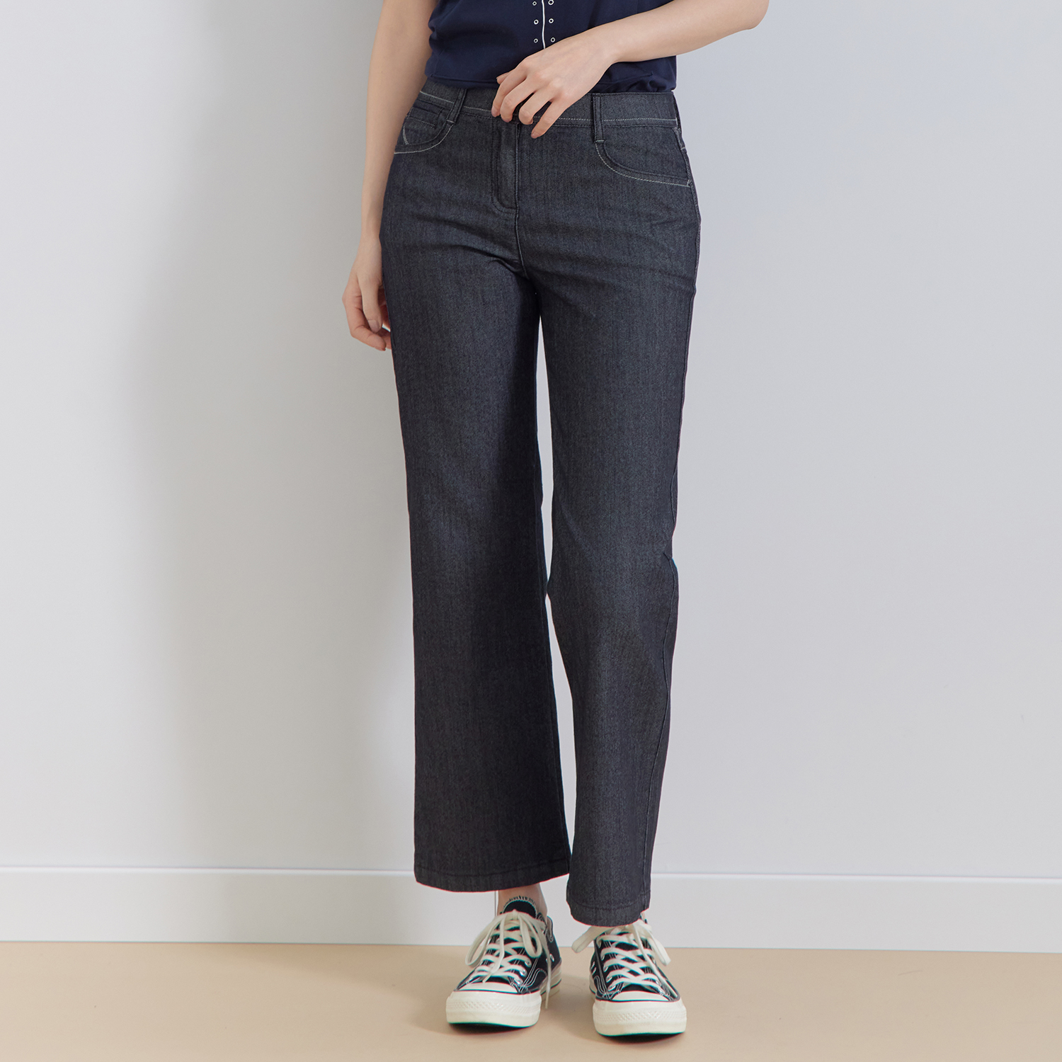 (기본/롱)(4컬러) 핏센 빈티지 세미와이드 데님팬츠 LOPTQ403