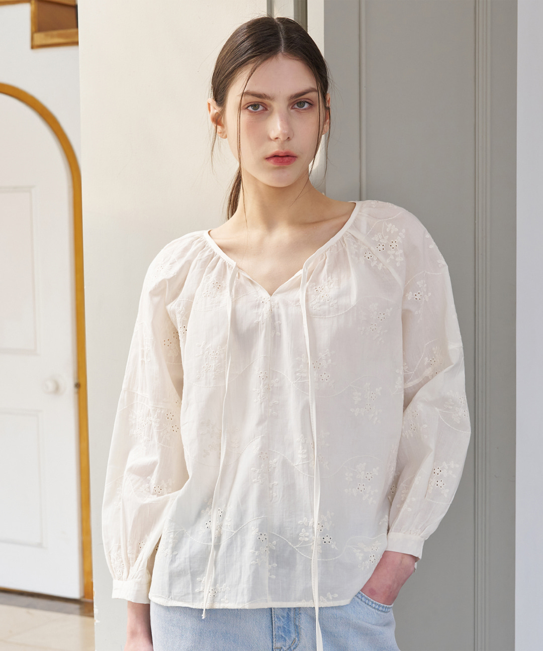 플라워 자수 패턴 긴팔 블라우스 (BY1BL021L0)