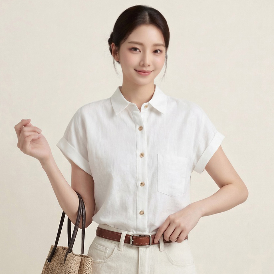 [예쎄] 내추럴 롤업 캡소매 포켓 블라우스(S6MBL018A)