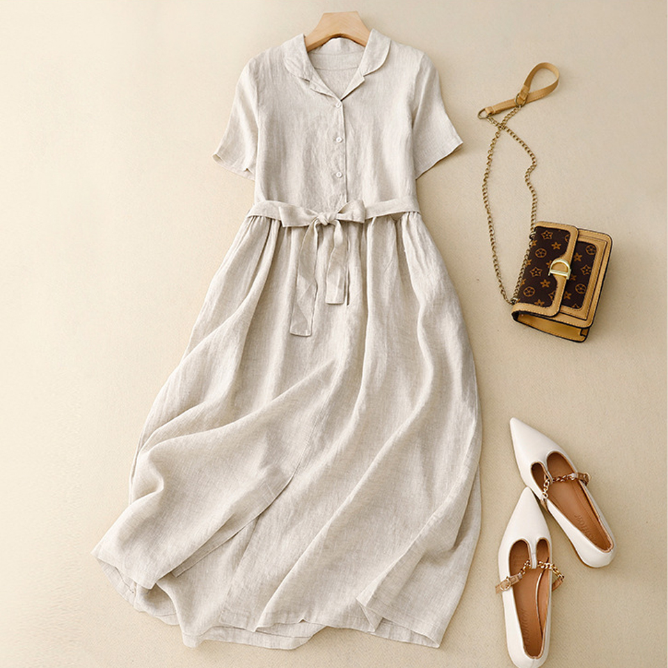 [예쎄] 허리스트랩 린넨터치 오픈카라 원피스(S6MOP003A)