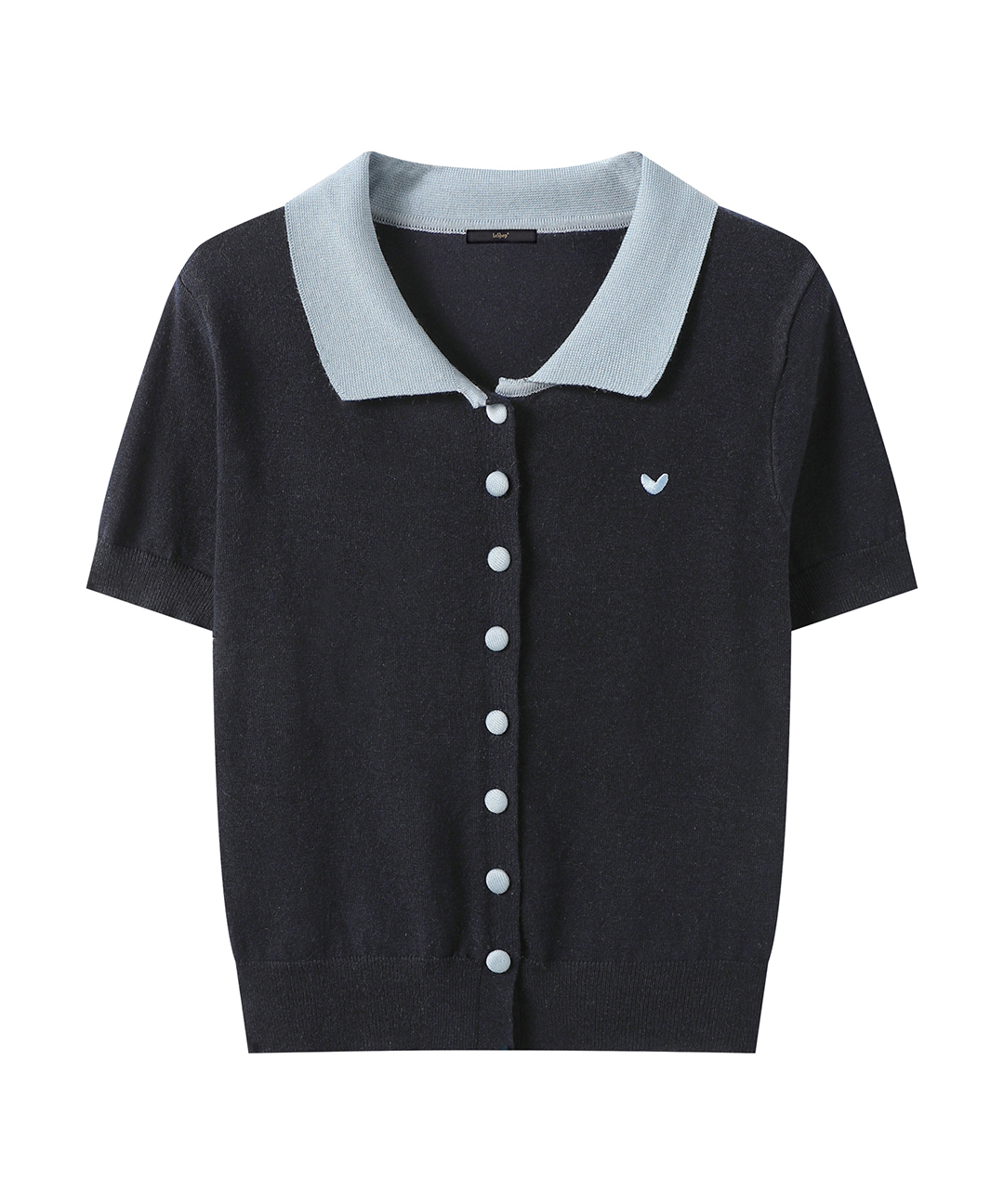 데일리 카라 배색 자수 니트 가디건 (DQ2CK003A)