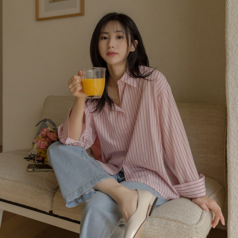 [3컬러/링클프리] 간편하게 링클프리 줄지셔츠