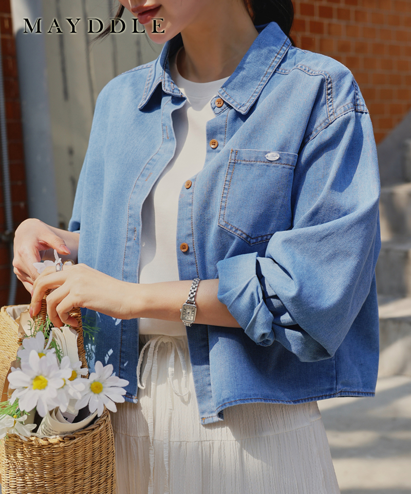 스카프세트 청남방 / 연청 진청 데님재킷 숏재킷 크롭자켓 짧은자켓 봄아우터 꾸안꾸 셔츠자켓 휘뚜루마뚜루 꽃놀이 나들이룩 여행룩 피크닉 긴팔데님셔츠 봄코디 해외여행코디 여성청자켓