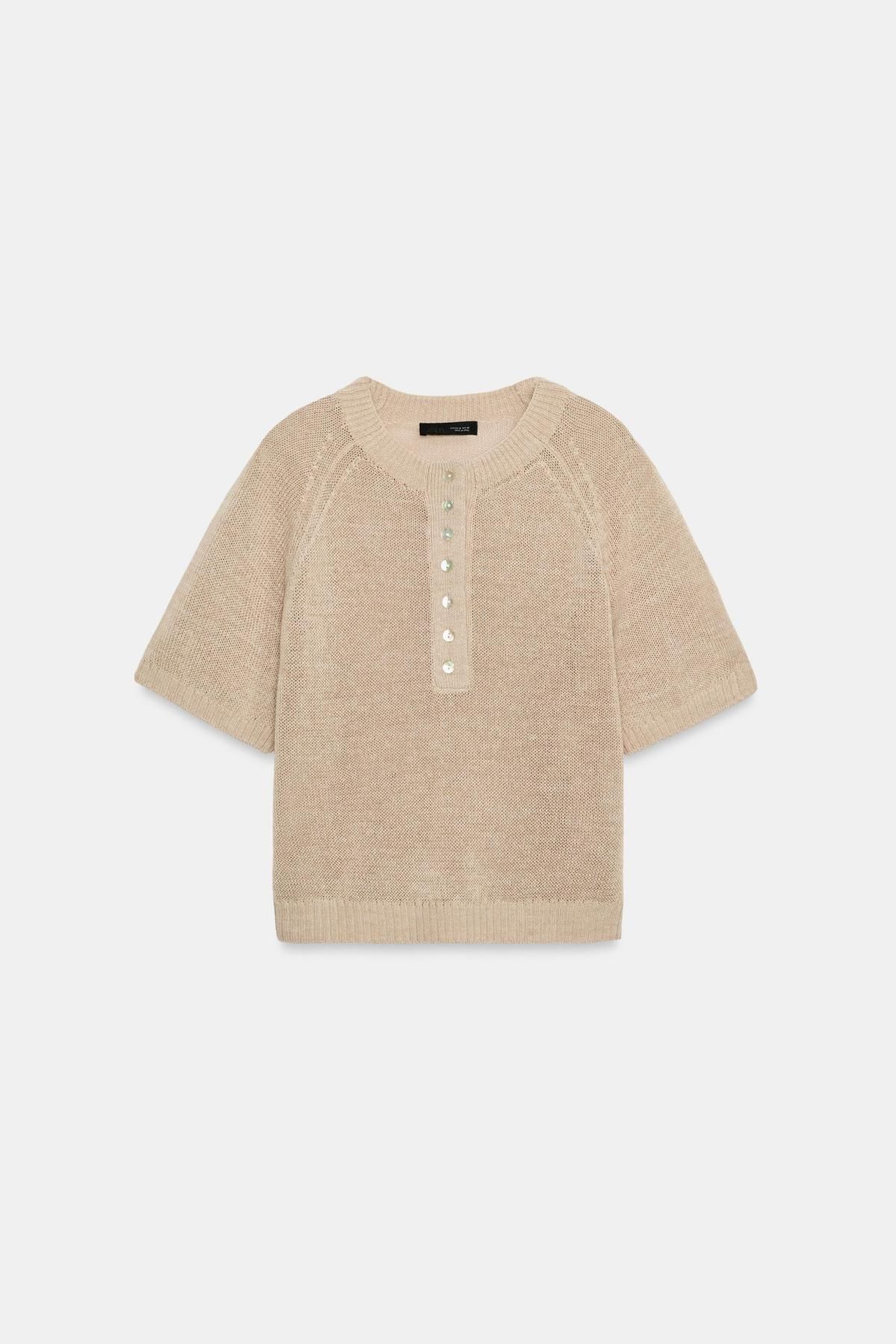 자라 라운드넥 버튼 반팔 니트 스웨터 2142/133/711 SAND