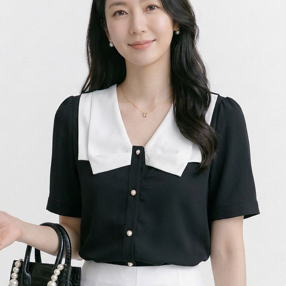 NB3119 빈티지 세련미 브이넥 카라 반팔 블라우스