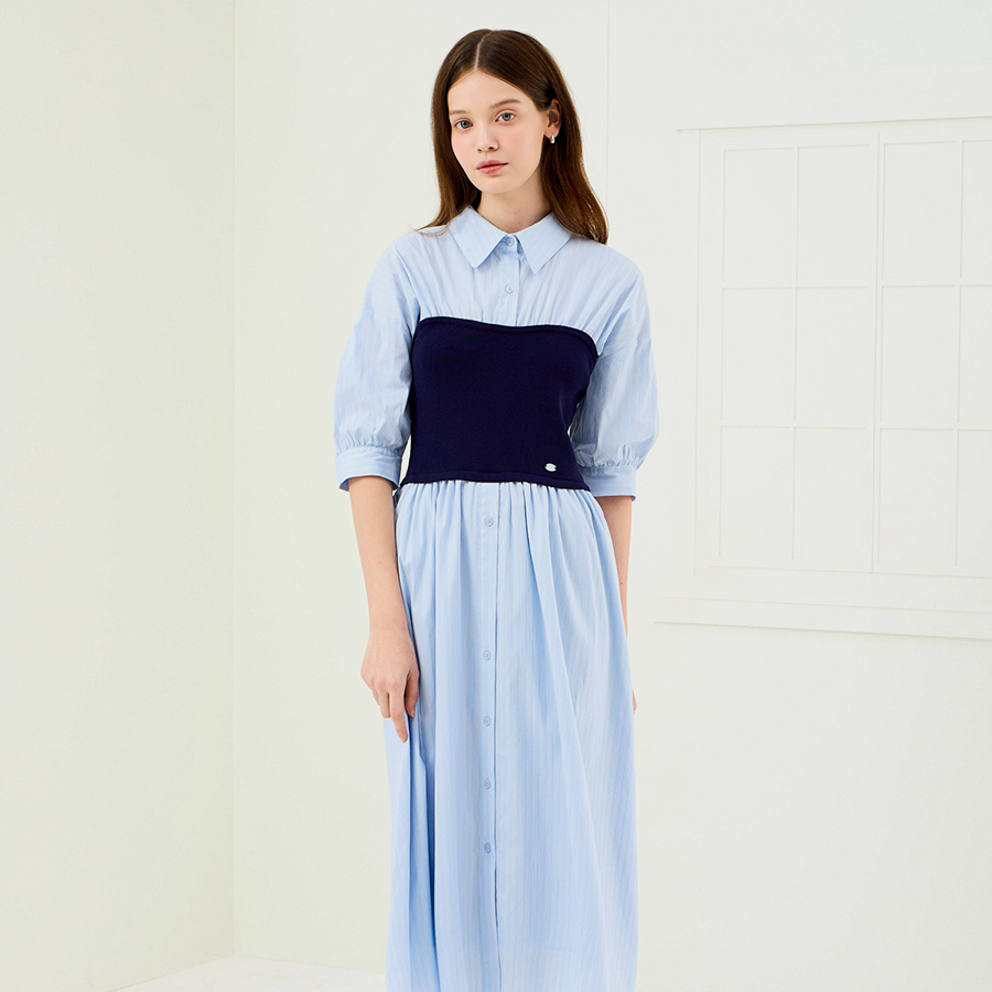 [시크릿 특가] (JJ지고트) 뷔스티에 배색 셔츠 플레어 원피스 GS5P0OP551
