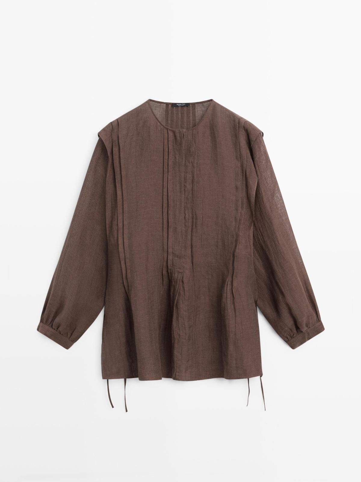 마시모두띠 브라운 린넨 오버핏 러플 블라우스 5144/738 BROWN