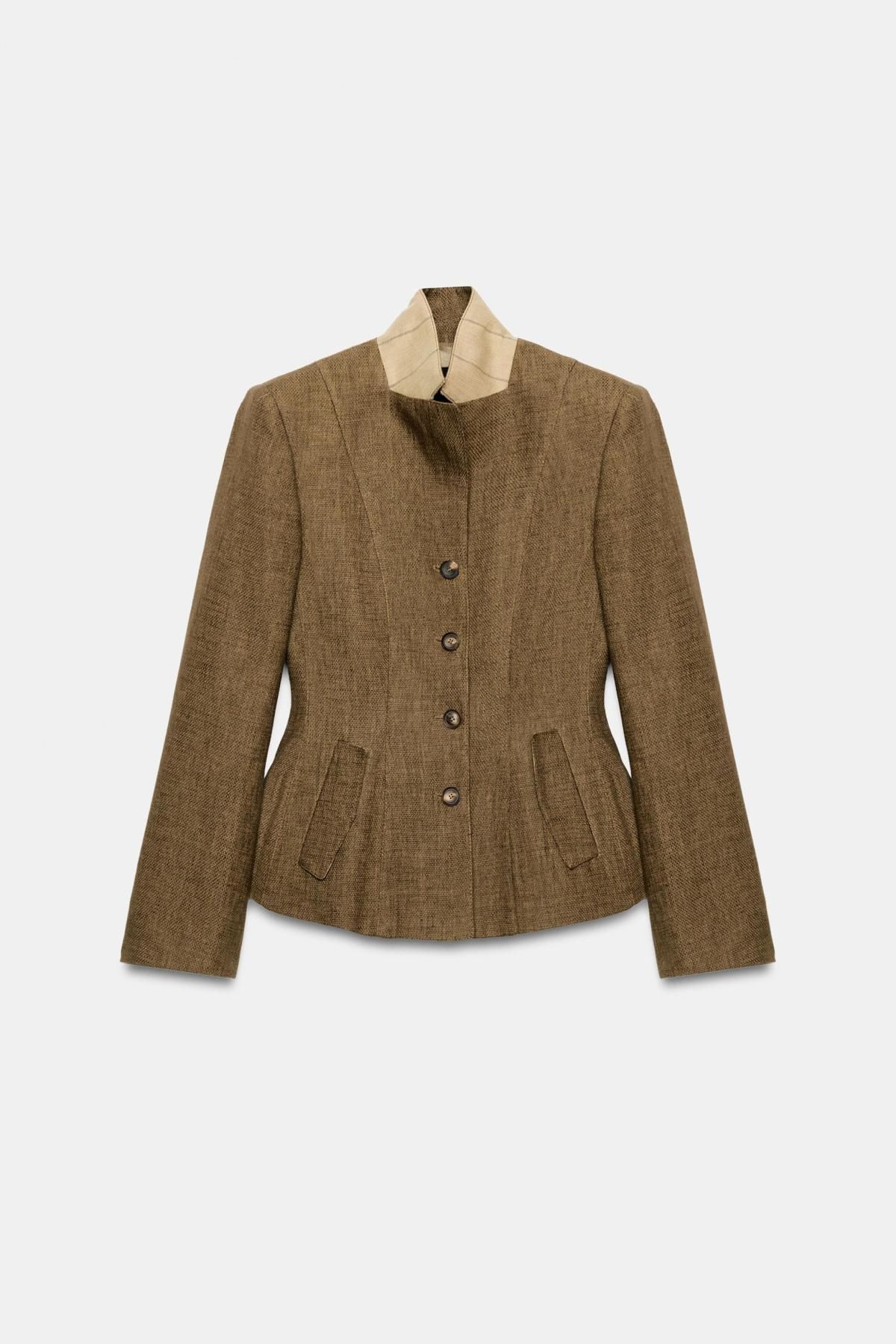자라 린넨 혼방 하이넥 테일러드 재킷 2722/172/700 BROWN
