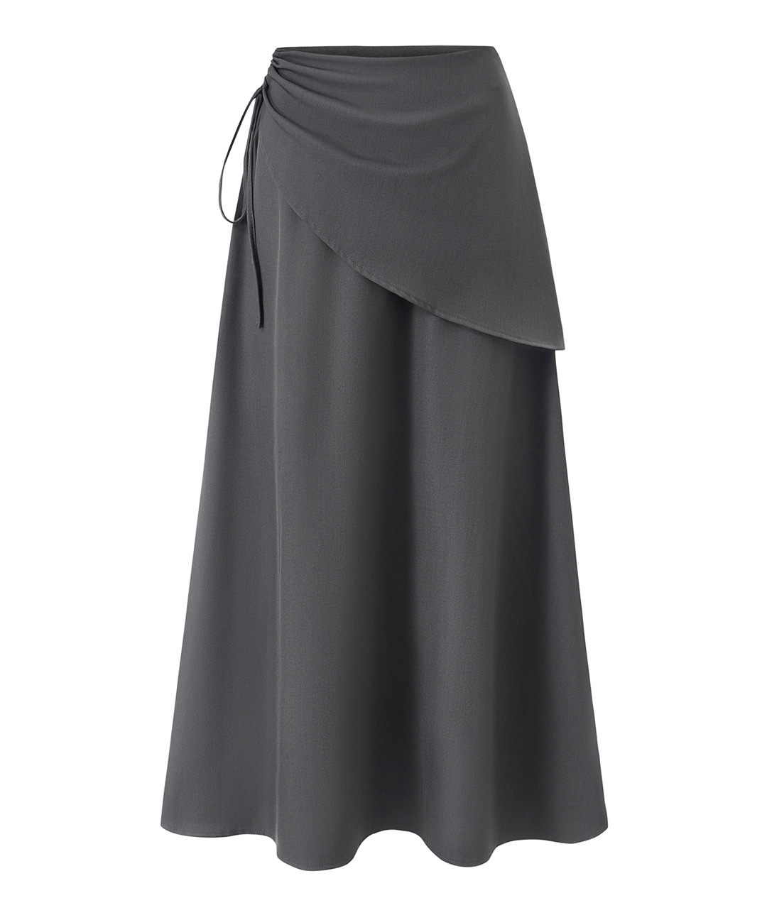[미니멈 에브리데이]언발 셔링 랩 레이어드 플레어 롱 스커트 (EC2WH001D)