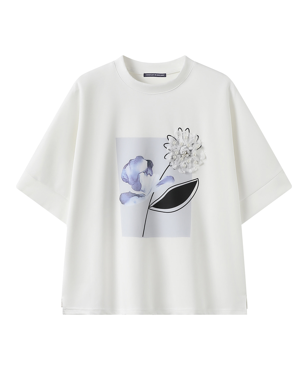 [미니멈 에브리데이]플로럴 코사지 포인트 반팔 티셔츠 (EC2LW010D)