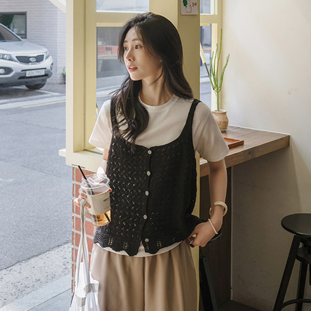 [5컬러/레이어드] 레디이 스카시짜임 니트조끼